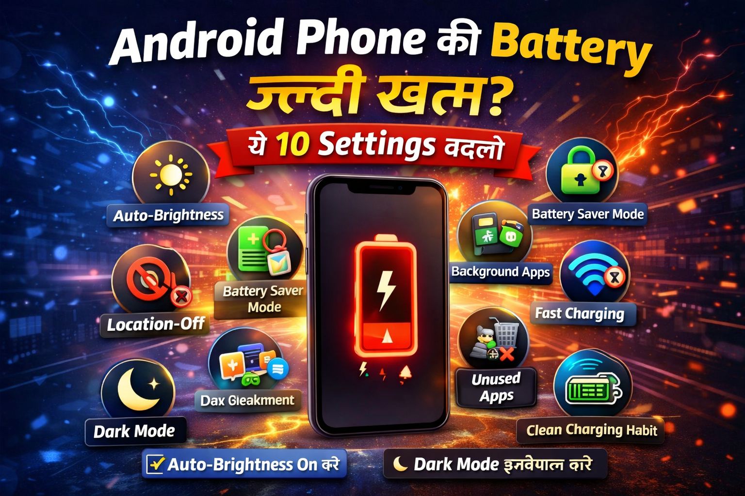 अगर आपका Android phone भी बार-बार चार्ज मांग रहा है, तो यह लेख आपके लिए है। यहां मैं आपको 10 ऐसी settings और habits बता रहा हूं जिन्हें बदलकर आप battery backup को काफी हद तक बेहतर बना सकते हैं।